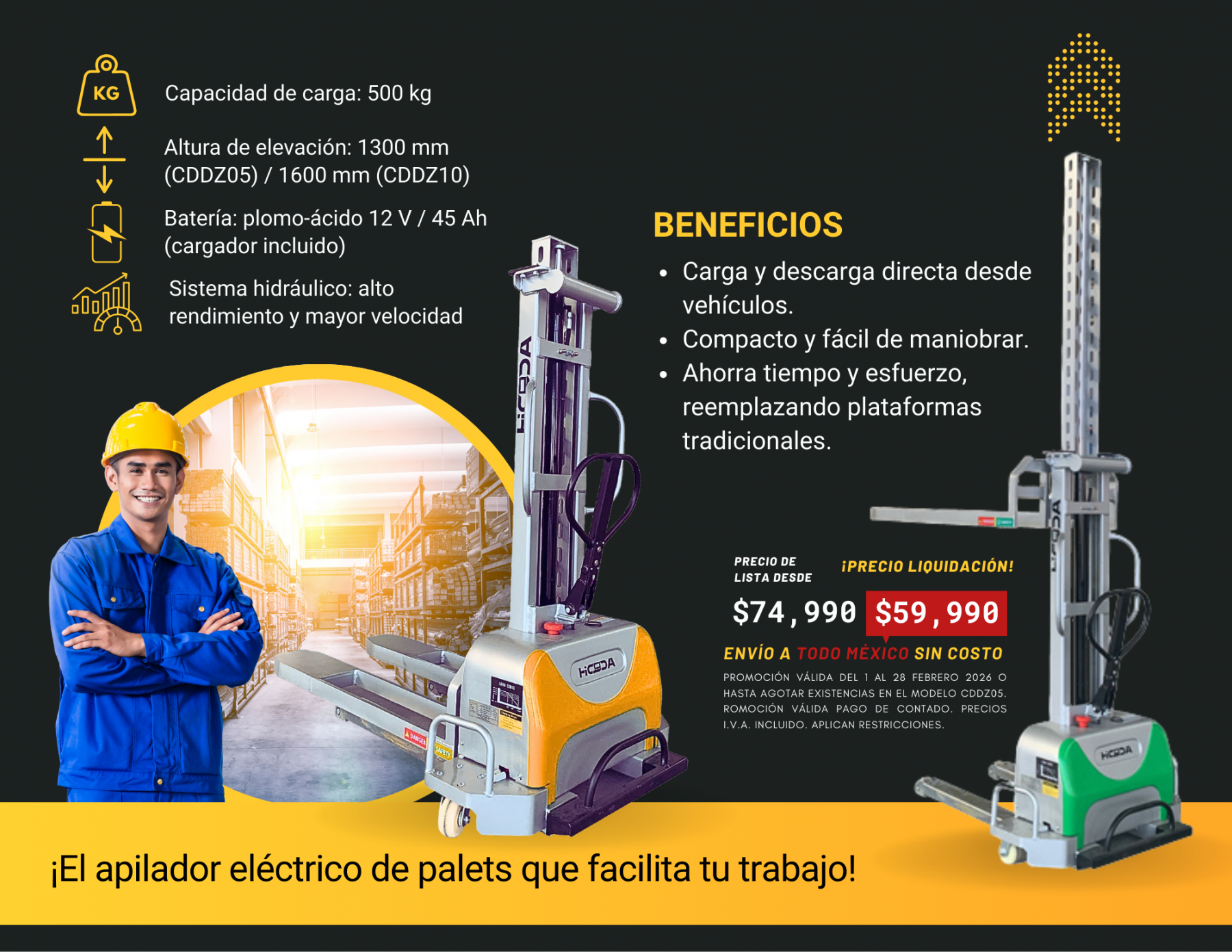 El Apilador Eléctrico Autoelevable Hicoda serie CDDZ es la solución ideal para empresas que buscan agilizar sus operaciones de carga y descarga, reducir tiempos muertos y optimizar recursos en almacenes, tiendas y transporte ligero.