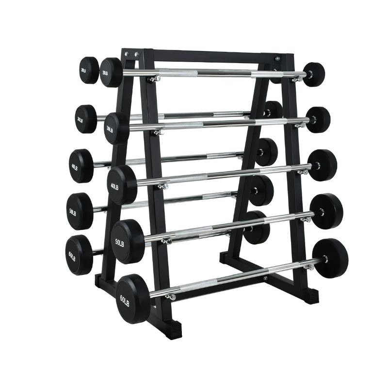 Incluido 10 barras rectas con pesos de 20, 30, 40, 50 y 60 Lb